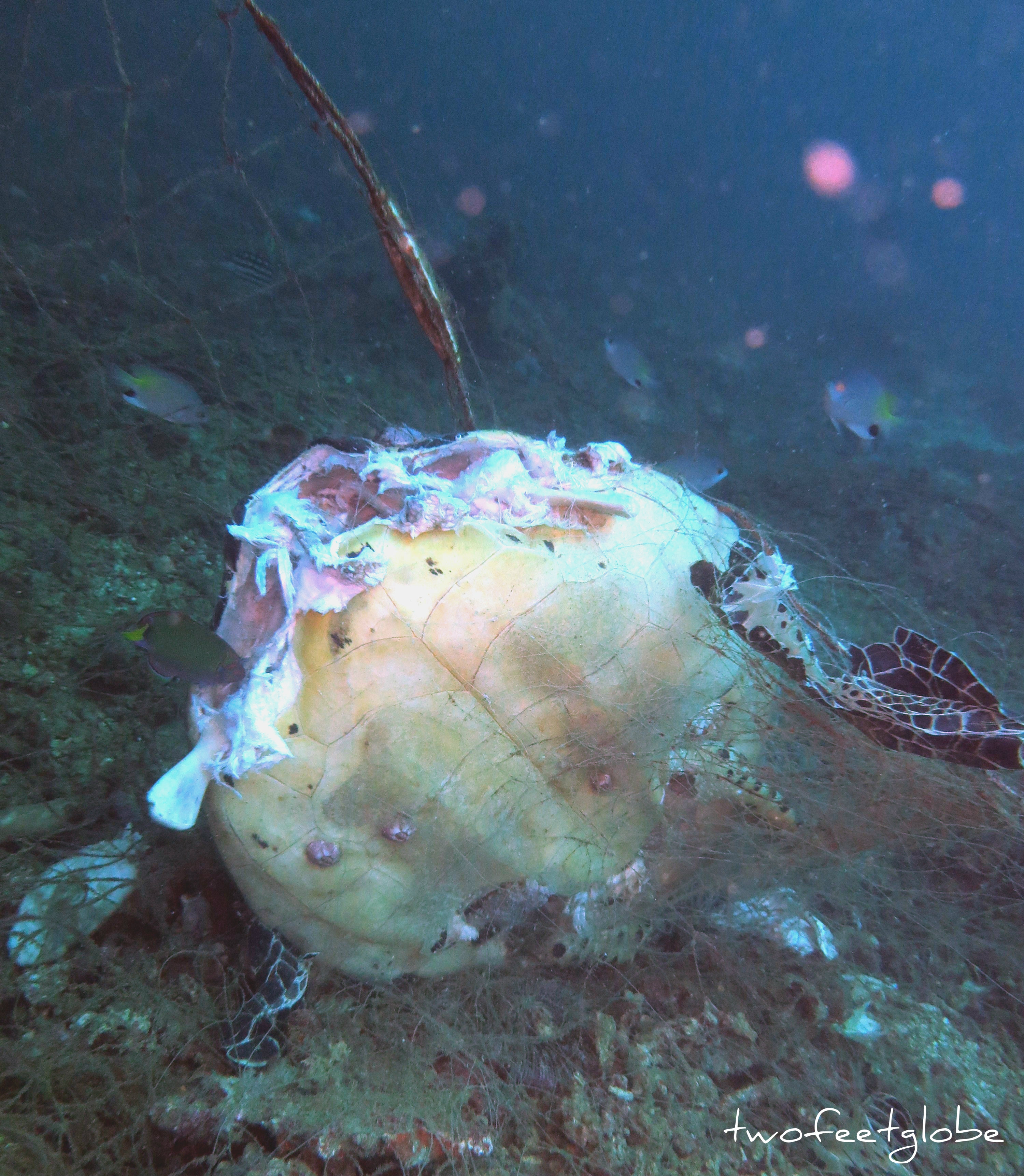Turtle carcass in East Sulug reef. Before the dive, our guide said “hopefully we can see turtle” and saw we did.