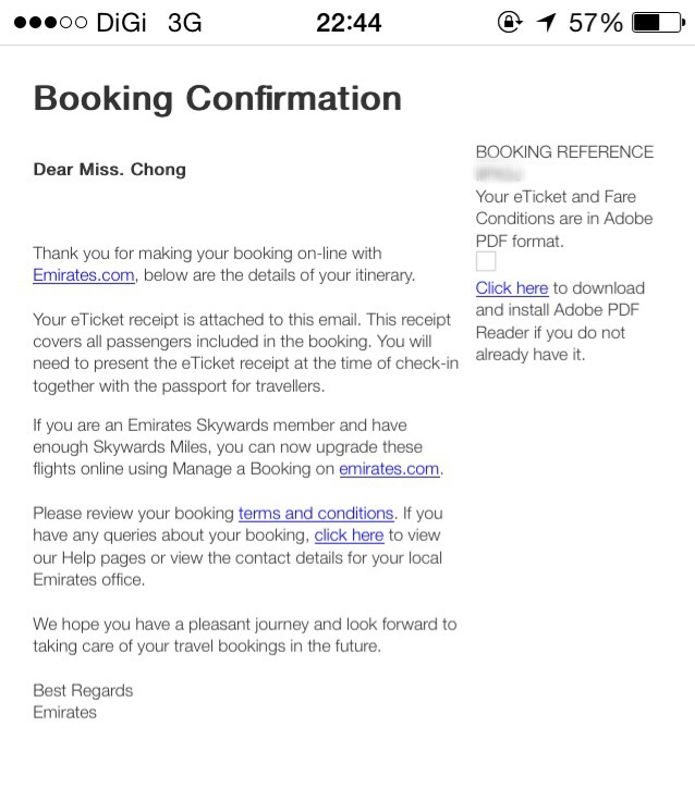 After months of contemplating, I finally bought my Emirates round-trip ticket at RM3411.
